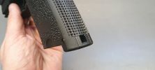 The CO2 version is very different from the gas version. Obviously, the first thing is that they used a completely different material, hence the different paintwork. The base of the magazine is also very bumpy, which is completely unnecessary. The huge magazine pad hides the CO2 cartridge insertion thread-piece, which has a straight notchon it. You certainly won't use an Allen key here. Because of the cartridge, the magazine body is cut out on two sides, so you can see a hole in the whole magazine body and the cartridge is visible – I recommend that it is placed in a closed pocket, because it is visible from far away and prevents you from hiding during skirmishes. There is a large gasket around the cartridge puncture piece - generally SRC CO2 magazines tend to be quite durable.