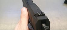 The sights on the gun are very good, by the way. They are massive, large and very visible with their white dots. The assemble of sights is quick, accurate and efficient. However, there can be problems with the front sight – you can break it or and abandon it, usually due to dropping.