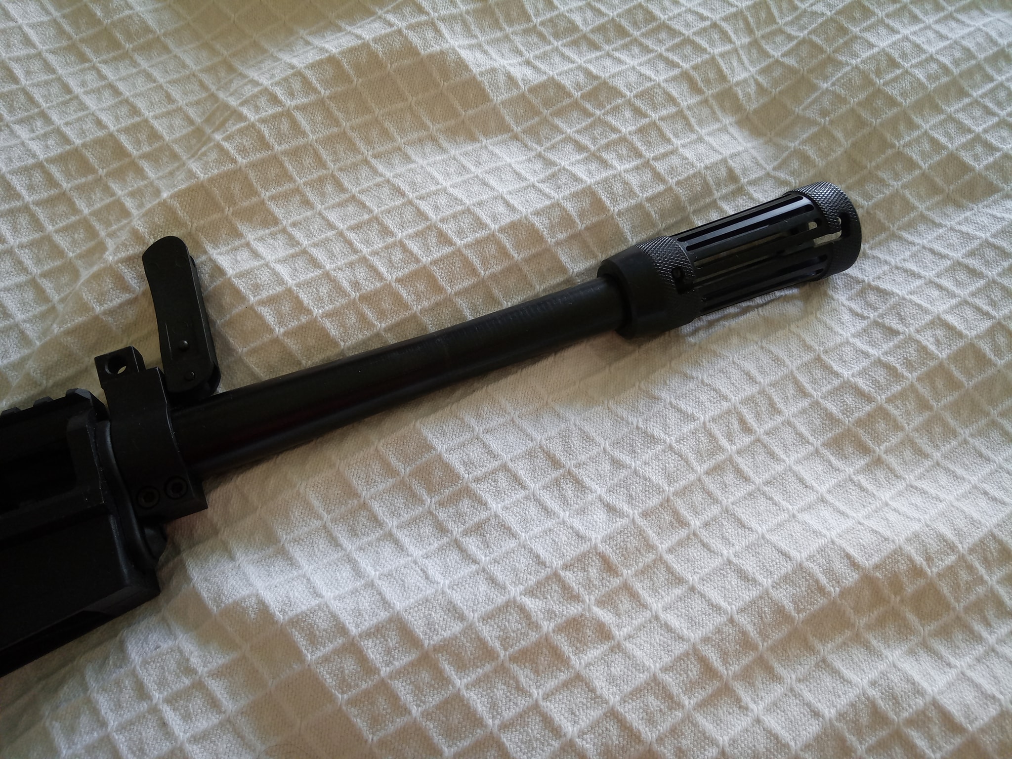 The range was not very outstanding, not even among shotguns. In practice, there was little point in arcing beyond 15 metres (50 feet). For me, the replica was most viable at BB weights between .23-.25 because of the fixed hopup. I should note here that the choke on the front of the outer barrel of the gun is also an imitation, which broke once - I could easily get a replacement piece from PPS at the time.