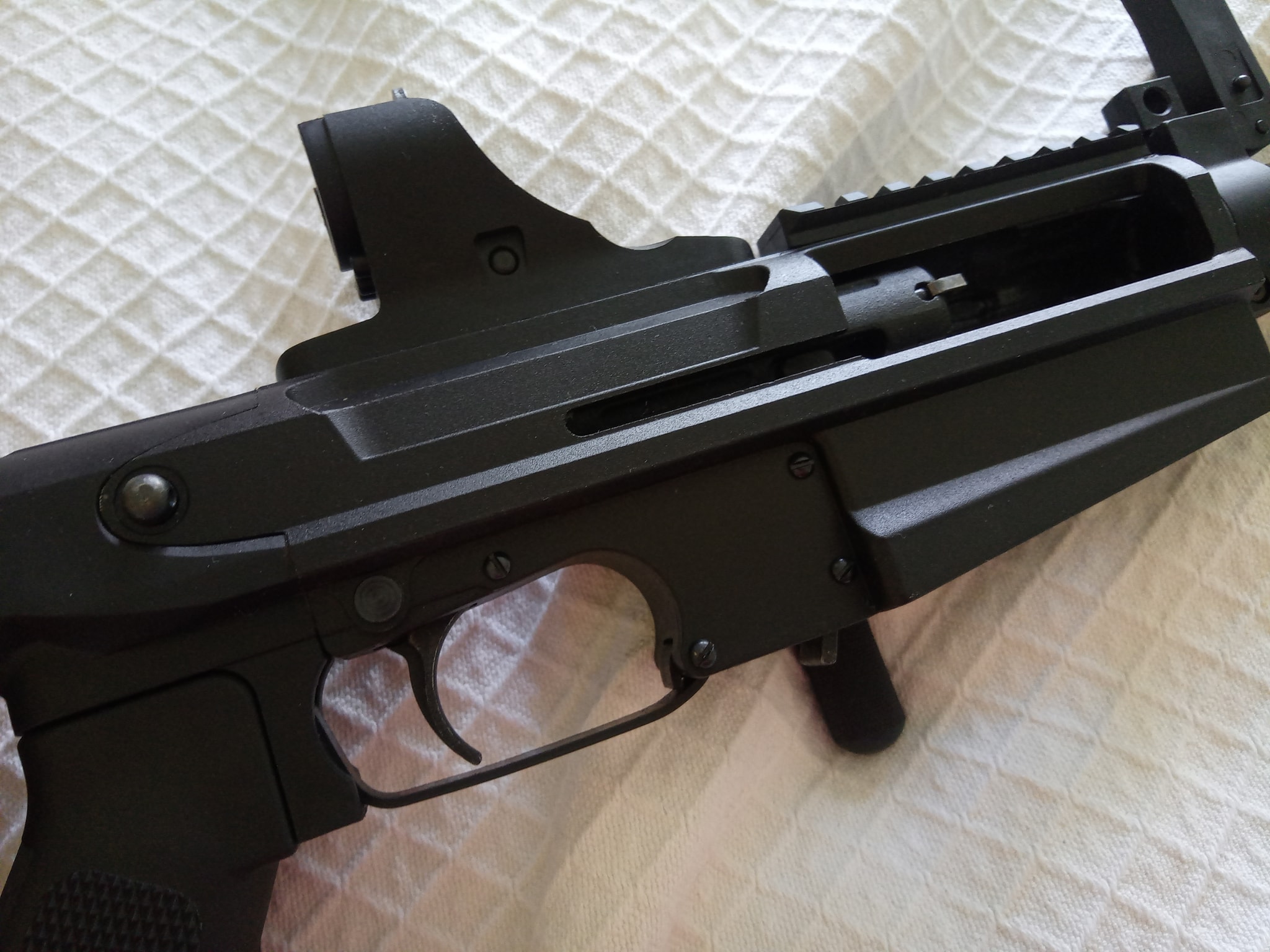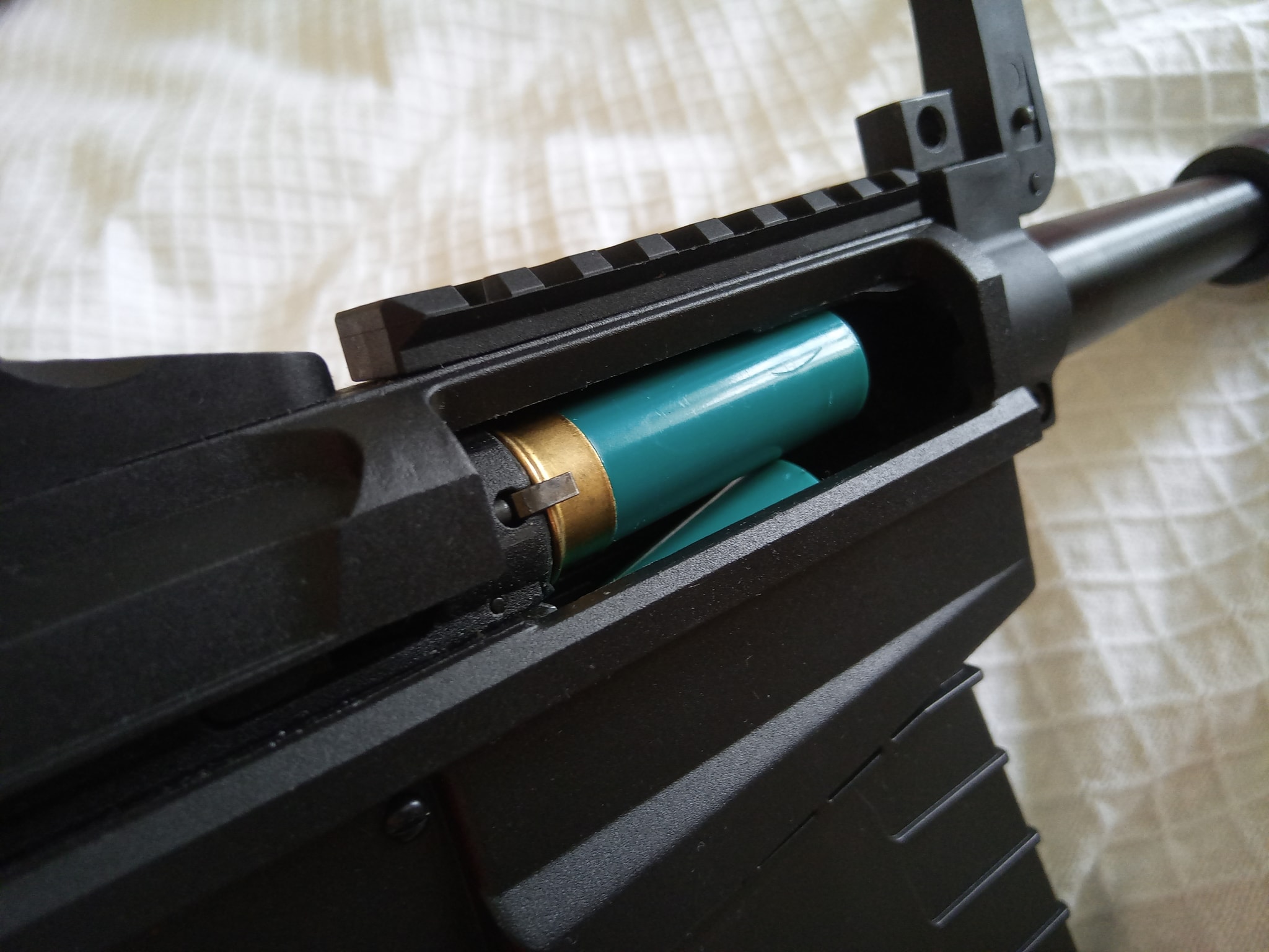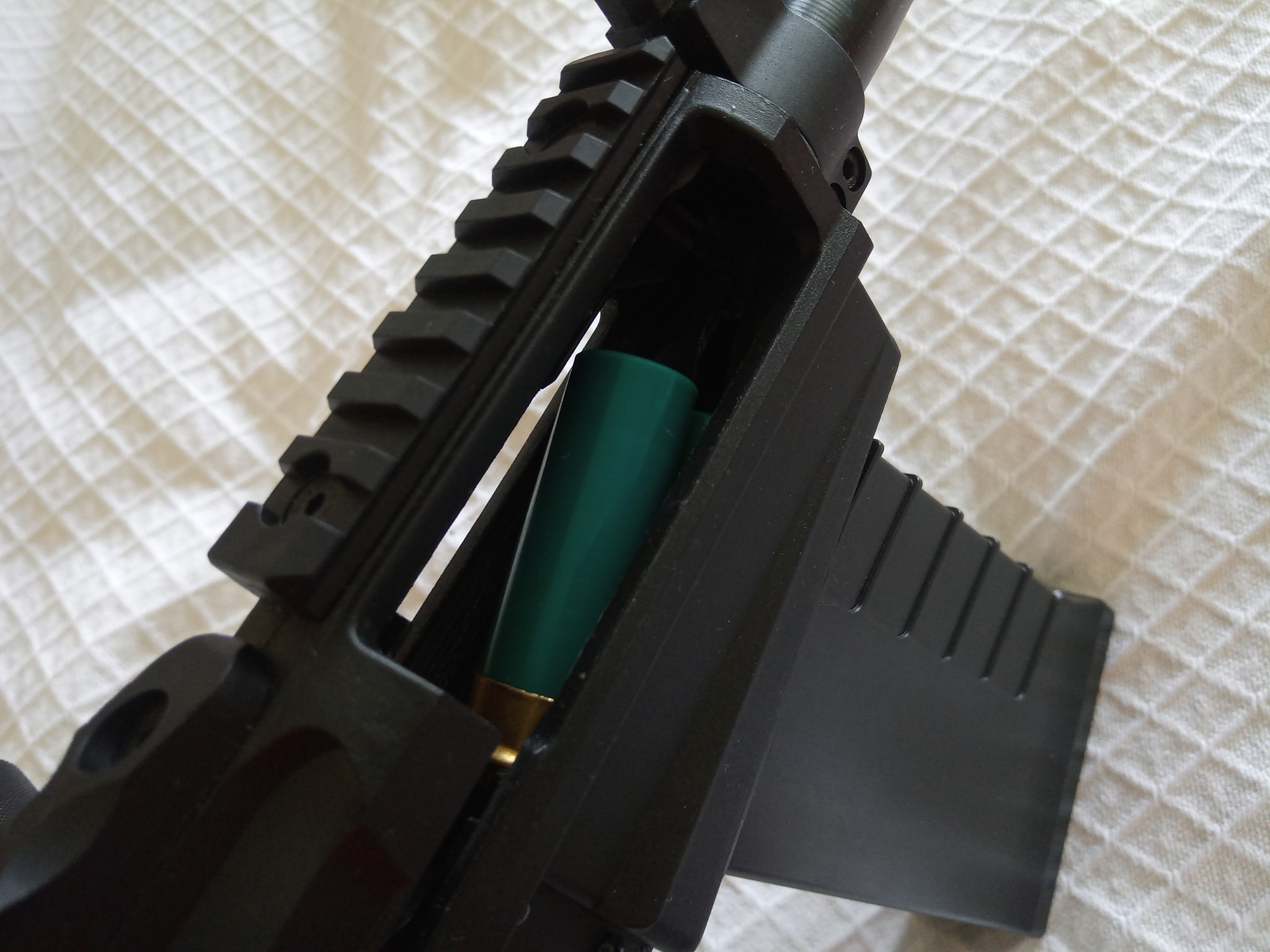 It's great to have a shell-ejecting feature, it's very realistic. However, it is a pain in the ass to keep track of and collect shells during and after games. It's more viable with a shell collection bag that needs to be emptied periodically. The ends of the metal shells are nicely deformed from being dropped, and in the case of plastic shells, the base part often comes off – turns out, it is a moulded bronze part that slides smoothly onto the plastic body. It can be mounted on M4's, which creates a very nice picture, unfortunately I don't have a photo of it. It was particularly noticeable that the lightweight XM-26, due to the light materials used for the weapon, did not make the undermount conversion too heavy for skirmishing. It didn't make much sense, but it was cool as eye-candy (and also, to intimidate the enemy).
