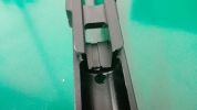 Maga az egész elsütő, hibajavítás és beállítás után a tokban tökéletesen illeszkedik. Már csak a helyére behelyezve is tökéletesen illeszkedik a szükséges csapok rögzítése nélkül is. A csapok természetesen acélból vannak, melegbarnított és gyorsan karcolódó felülettel. Teljesen gyári Marui szánt ráhelyezve a szán tökéletesen illeszkedik. Nem lötyög és nem kotyog egyáltalán. A szán futása a tokon tökéletes, jobban nem is lehetne érezni ilyen téren.