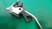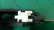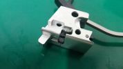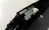 Nos az elsütőszett egy aluházban található. Maga a ház egy fényes, bemattult, homokfújt felületű nyers alutömb. Egy csavar fogja össze az egészet, nagyon könnyen összeszerelhető. Az elsütőház felülete picit olcsó hatást kelt, ráadásul a tokból jól látható a fémes felülete - így elüt ez a részlet a pisztolyon. A hozzá tartozó alkatrészek viszont teljesen acélból vannak, de a szetthez adott rugók borzalmas állapotúak - igazi kényszer megoldás részei ezek. Az ütőszeg-retesz rugóját kifejezetten nem ajánlom felhasználni, ahogy az összes többiből már érdemes minőségibb rugót beépíteni. További gondom volt, hogy az ütőszeg mérethibás, vagyis az ütőszeg-retesznek nincs elegendő hely hogy beakadjon ebbe az alkatrészbe. Vagy az ütőszeget, vagy a tokot vagy az ütőszeg-reteszt kell méret pontosítani - különben ütőszeg reteszelés nincsen. Magam részéről az ütőszeg-reteszt módosítottam a tokhoz. A kakas bal oldalán telibe látható az összes kilökőtüske nyoma, ami nagyon csúnya. Ha ez a részlet zavar, az egész kakas külső felületét szükséges felületre csiszolni, majd újra melegbarnítani - vagy eleve másik kakast beszerelni. A többi alkatrésszel sincs másképp. Mind acél és tele vannak kilökőtüske nyomokkal, ellenben a dolgukat jól teszik és a felületük is szép acél anyaguk ellenére is. Az elsütőház elején lévő, tárat pozíciónálló tüske nagyon hangsúlyos - erős, masszív és lehetetlenség eltörni is.