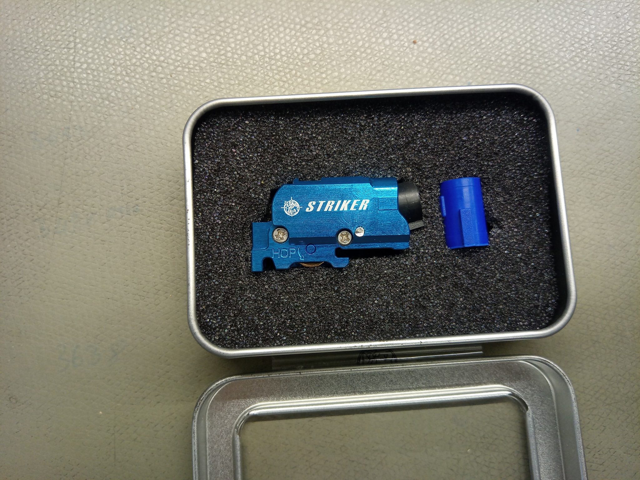 Először is a csomagolás kifejezetten gusztusos és király. Végre nem egy zacskóban kapjuk a szettet, amelyet egy kartonpapírral zárnak le. A dobozban szivacsozás tartja helyén a kamrát, illetve meglepő módon egy hop gumit is. Mivel nekem már voltak tapasztalataim a kamrával, a gyárilag mellékelt 50-es keménységű (fekete színű) gumi mellé rendeltem egy 70-es gumit is (kék). Miután az alkatrészt beépítettük a doboz felhasználható egyéb alkatrész tárolási céllal - én általában ide tartalék hop gumit, nózi rugót és egyéb apró alkatrészeket szoktam tenni.
