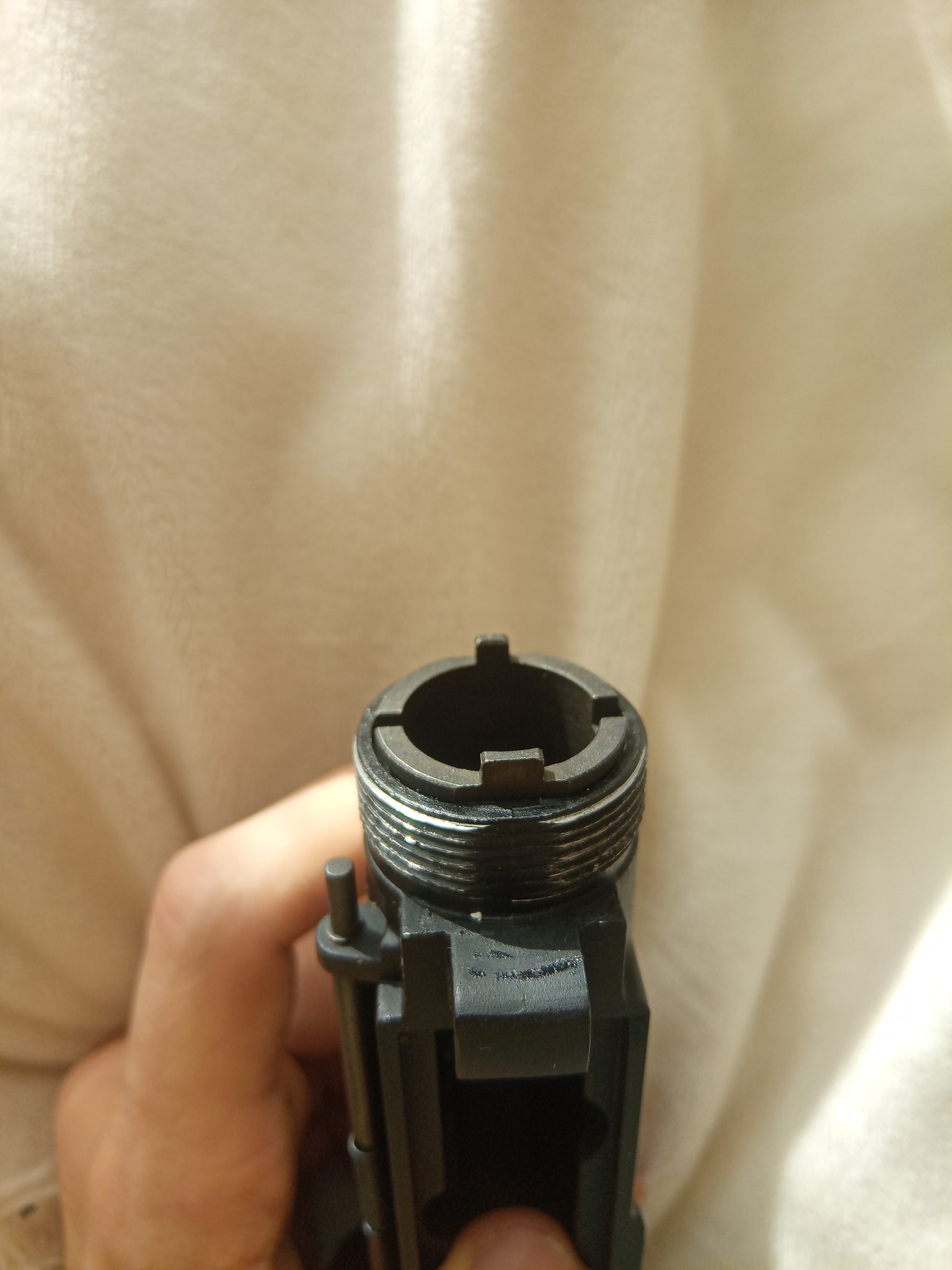 A fényképeken jól látható a különbség, hogy milyen egy elhasználódott aluminium csőfar, miközben az acél ehhez képest teljesen sértetlen. A deformáción túl az is gond, hogy az aluminium verzió néhol nagyon sorjásan marad, ami rögtön a BB karcosságát okozza - ami kihat a lőképre. Talán nem is véletlenül első dolgom a csőfar sorjázása és a sarkok lekerekítése - mert bizony a megmunkálás utáni állapot egy késsel egyenértékűen vág. Ha használt az alu csőfar, bizony készülni kell arra is, hogy a deformáció miatt az eltávolítása sem lesz egyszerű, én erre egy méretes gumirugót használok fakalapáccsal megtámogatva - a tokfelsőből csőtorkolat irányába kell kiverni a helyéről.