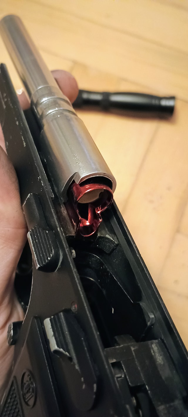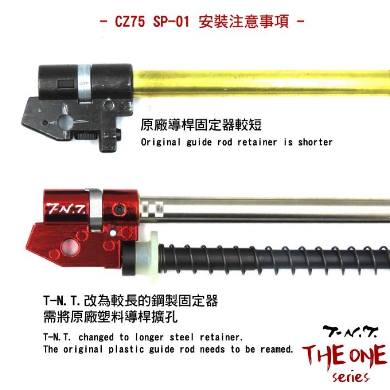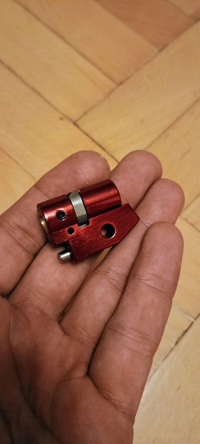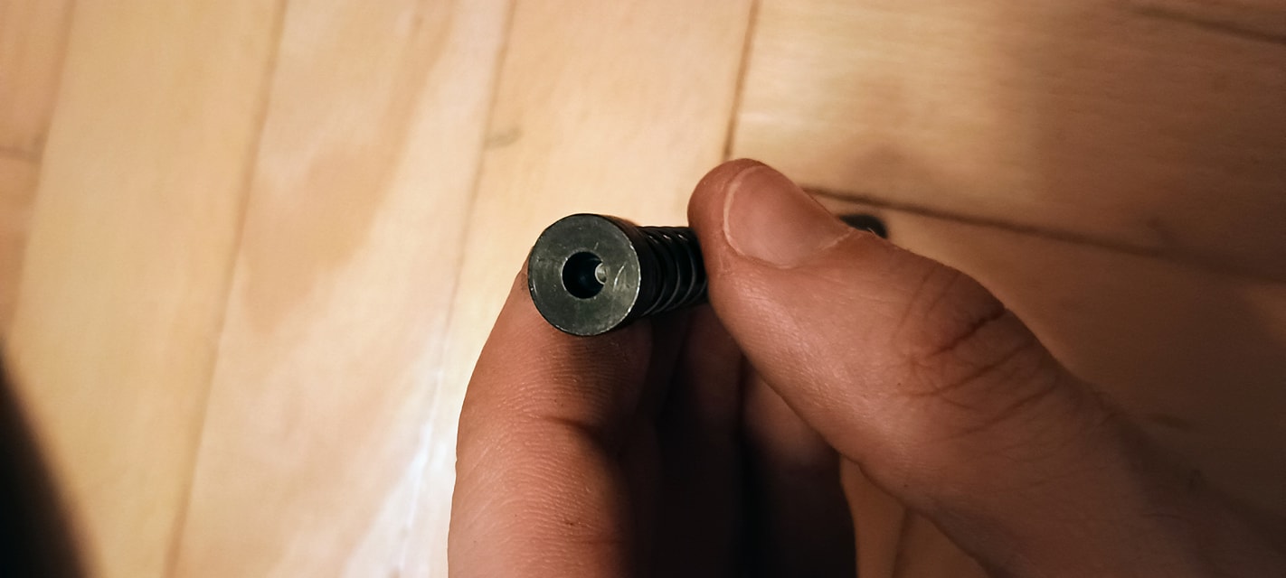 A beépítés során olyan problémába ütköztem, hogy a rugóvezető mérete nem volt azonos a hopup kamra csapjának méretével. Emiatt a rugóvezetőt fel kellett fúrjam, hogy az a hopup kamrára felhúzható legyen. Ez direkt történt így, mivel gyárilag nagyon rövid csapolás van a rugóvezető pozícióban tartására. Elviekben így stabilabb a rendszer, de némileg dolgozni kell vele.