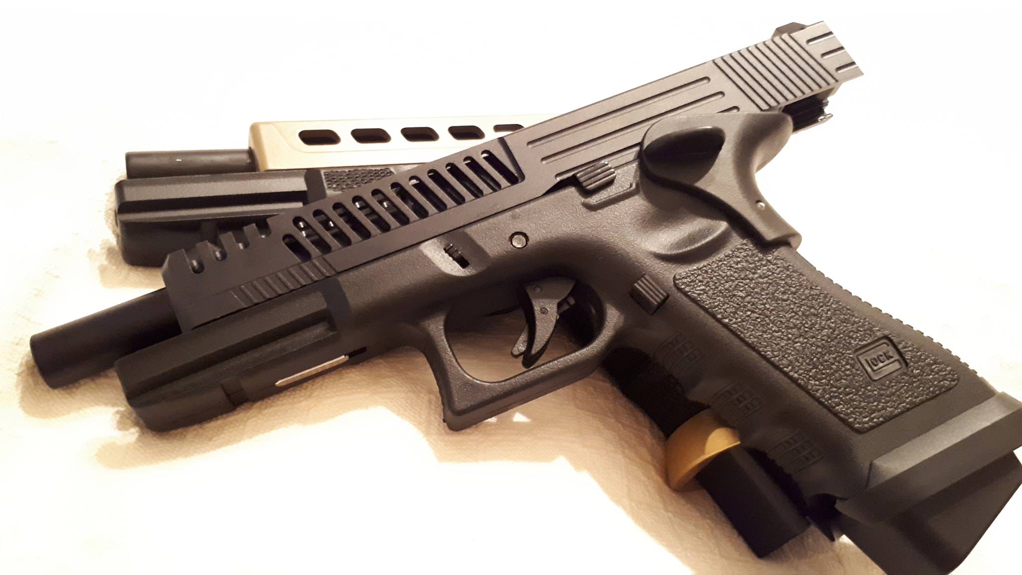 Egykor nagy Glock-mániában szenvedtem, amit szépen lassan sikerült kigyógyítanom magamból - de persze nem tűnt el teljesen. Ebben a korban számos Glock építésem volt, illetve magamnak kezdtem el egy építést, ami kicsit elborult a végére - lásd MITA G17 építés az alkatrész cikkek között. Nost ez addig fajult, míg egy időben 4-5 Glockom volt, ráadásul az aktuális kedvenchez 6-8 különböző, komplett szánt raktam össze. A jelenlegi kedvencem alapja ez a pisztoly, amelyhez nagy rémenyeket fűztem akkoriban látva a változás előszeleit az akkoriban nagyon rossz hírű Army felől.