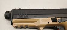 A pisztolyt kézbevéve ismét feltűnik pár dolog, még kidobozolás előtt és után is. Az első, hogy az éles Canik TP9 esetén egy jópofa koffert adnak a pisztolyhoz, benne számos tartozékkal - markolatpanelek, red-dot szerelékek, stb. Nos itt semmit nem fogunk kapni, csak a ronda kartondobozt, pisztolyt, egy tárat és némi papírost. Az éleshez hasonló csomagot csak akkor kapod meg, hogyha a gyűjtői változatot veszed meg drágábban - nagyjából 40-50€ felárat jelent, kissé pofátlan, de a felárat megéri.