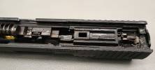 Itt jön a meglepetés, hogy a szokásos airsoftos belsőtől nagyban eltérőt kapunk, nincs semmilyen kakasos szerkezet. A GHK-hoz hasonló "strikeres" elsütést kapjuk.