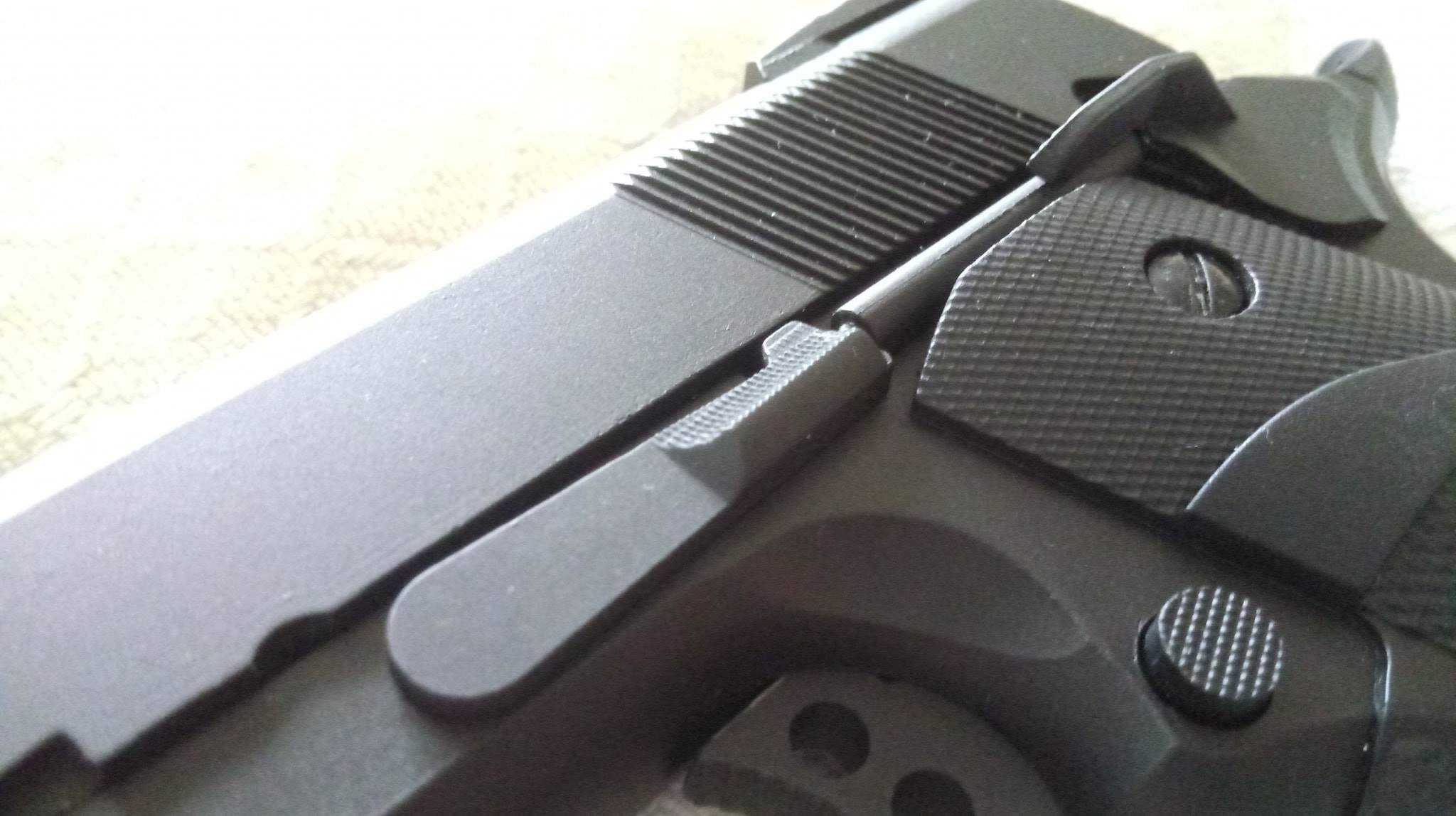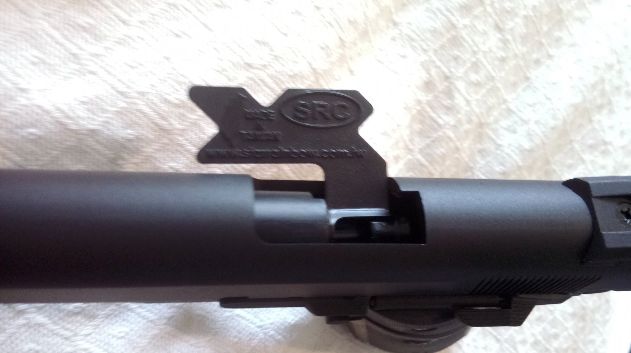 Az SRC 1911 leginkább a WE-hez lehet hasonlítani. Méretei és tárja erősen hasonló ahhoz, talán még kompatibilisek is egymással. Festése elmegy, nagyban tükrözi az árát, hiszen 20k Ft alatt ne várjunk csodát. Félfényes, korrekt felület található bárhol, amelyről a festék gyorsan kopik. Feliratok sehol, amely talán a markolat puritán megjelenésében ütközik vissza - hiányzó logók és feliratok rontanak az összképen.