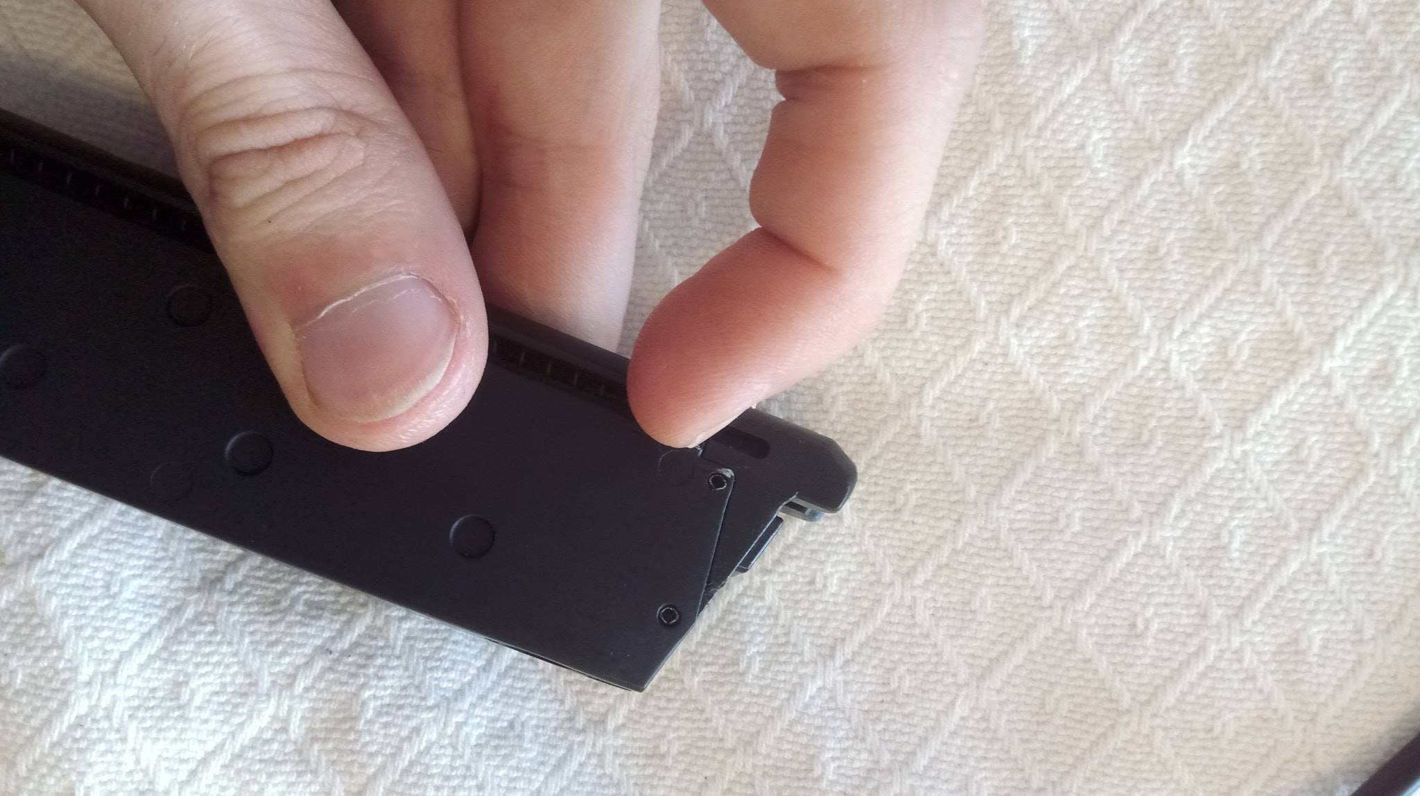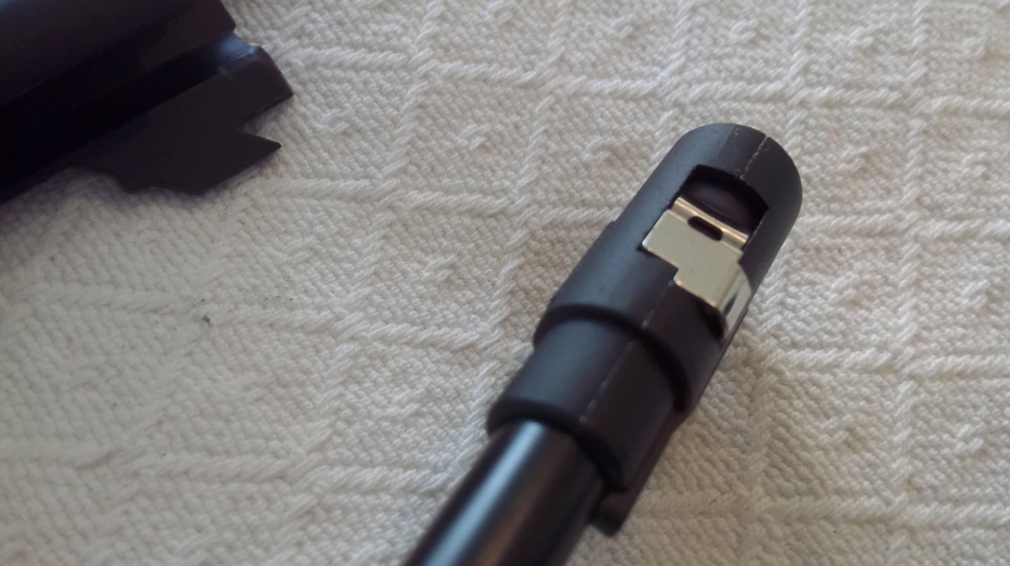A tár nagyon vékony, könnyű. Betölteni nem könnyű, ugyanis az adogatótömb állandóan megszorul a felső állásból. Mindig külön csavarhúzó segítségével kell lehúzni és alul rögzíteni. Töltőnyílás segítségével egyébként gyorsan meg lehet tölteni azt.
