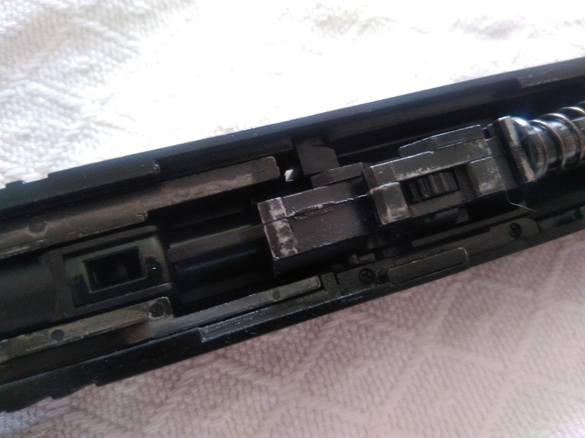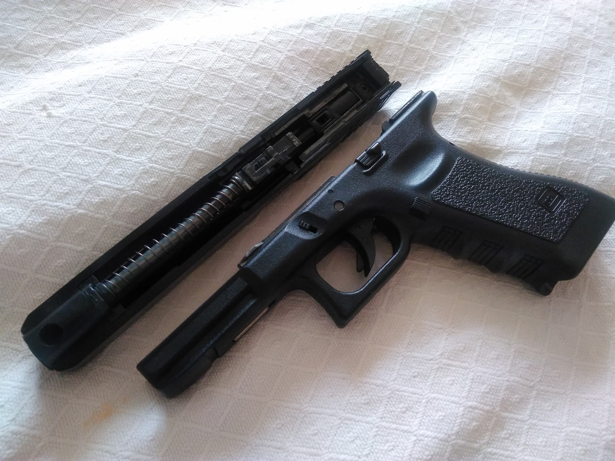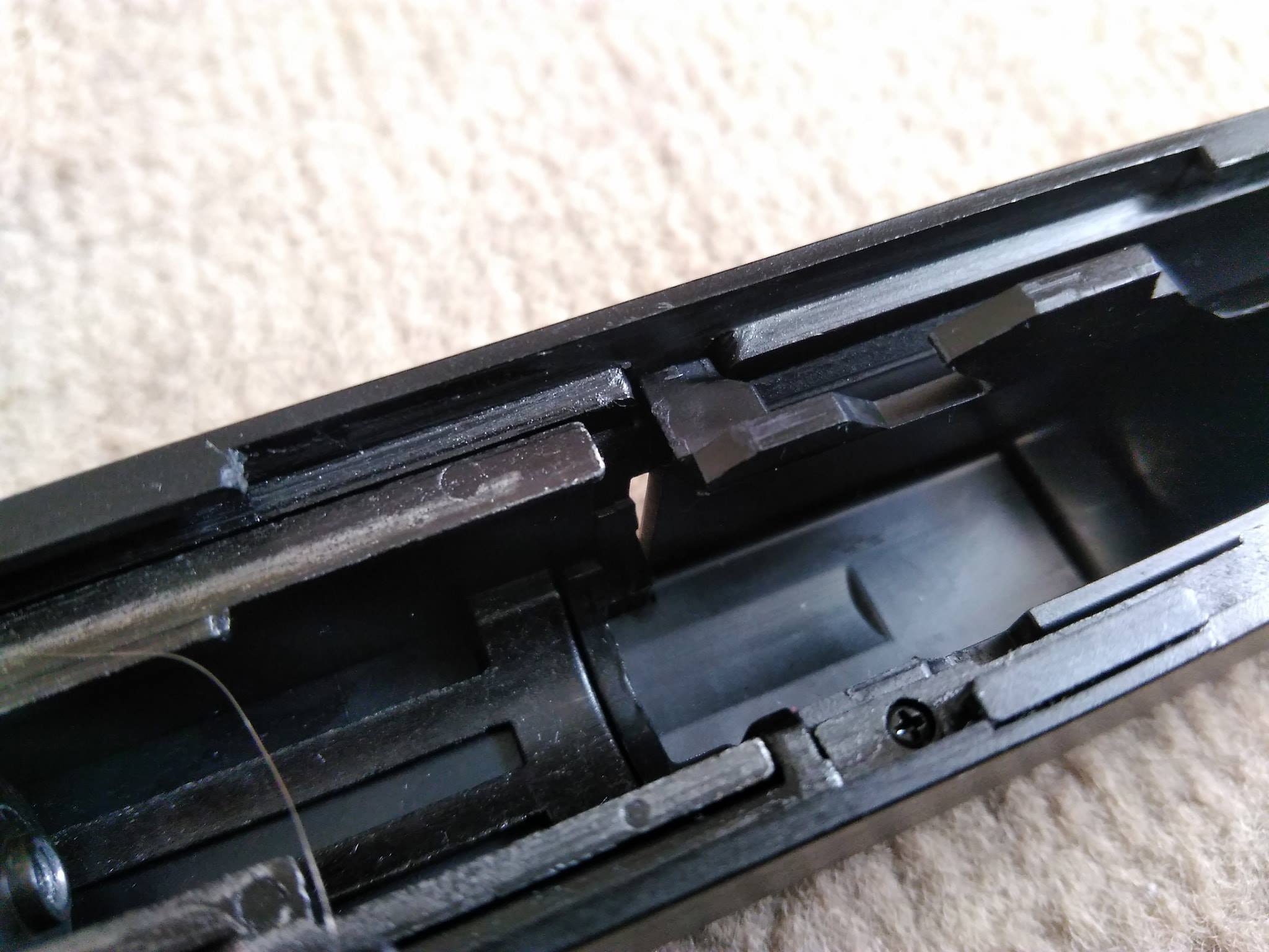Továbbra is műanyag szán kerül a pisztolyra, de a szánakasztó mentén fém betét került be, míg a külső cső egy szárny segítségével csúszik a vezetőlécek mentén. A külső cső így elviseli, ha súlyt teszünk a végére (tracer, hangtompító egység miatti elakadás biztosan ismerős egyesek számára), illetve a pontosság is jelentősen javult. Nagyszerűen működik és sport jellegű használat esetén kifejezetten jól jön a teljesen állítható hátsó irányzék - bár külön is lehetne kapni ilyesmit korrekt áron. A szánon belül minden más teljesen azonos mint más Glock replikában, így az elsütő miatti szán akadás is még mindig ott van a listán - amit egy 8mm csapágy azonnal megold.
