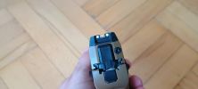 Az elsütőrudazat nagyjából a tokkal egy anyagú. Felülete azonosan érdes, csak nem úgy mattul ki mint a tok maga. Ami borzalmas, hogy a tok és az elsütőrúd azonos érdessége szép súrlódó érzést ad, reszelős a kettő mozgása egymáson. Ordít ez a hiba, mégis mai napig így gyártják a típust. Rögtön került is elő a csiszolóanyag és az elsütő rudat eltávoltva fényesre módosítottam a felületet - legalább viszonylag könnyű kiszerelni. Mozgása fura, nem akad vagy hasonló, de mégsem érzem az igazinak. Fura, hogy a szánban lévő BBU hogyan koptatja meg az elsütőrudat. Az elsütőrudazat visszahúzó rugója is picit fura helyen van, másképpen húz mint elvárnám, de cserébe könnyen szerelhető. A képen szintén jól látható ahogyan az elsütőbillentyű is kopik a szoros illesztés miatt.