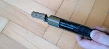 A másik, hogy a tárnak nincs porlasztó/szűrő betéte, mint a KJ CO2 táraknál megszokhattunk és megszerettünk. A harmadik, hogy a Co2 szinte direkt a nóziba kerül vezetésre, tágulási kamra szinte elhanyagolható méretű. Emiatt a CO2 tár olyan sebességgel fagy meg, hogy gyorsan használhatatlan állapotba kerül. Mivel a tártest nyitott a patron csere miatt, a tárat utólag gázosra alakítani is lehetetlen. Maga patron csere sem valami kényelmes, mert a betekerő csavart kb teljesen ki kell tekerni, patron pedig aztán elől bejátszani a kiszúrónál és beejteni a végét. A patront betekerve pedig a patron körüli tömít nagyon gyorsan tönkremegy, nekem olyan 20 tömítés után a gumilap (sima szilikonak tűnik) teljesen megsemmisült. Maga a CO2 patron is gyorsan megfagy, így már őszi időjárásban fagyott szilikon darabokat köpköd a nóziba, működés csíráját sem mutatva.