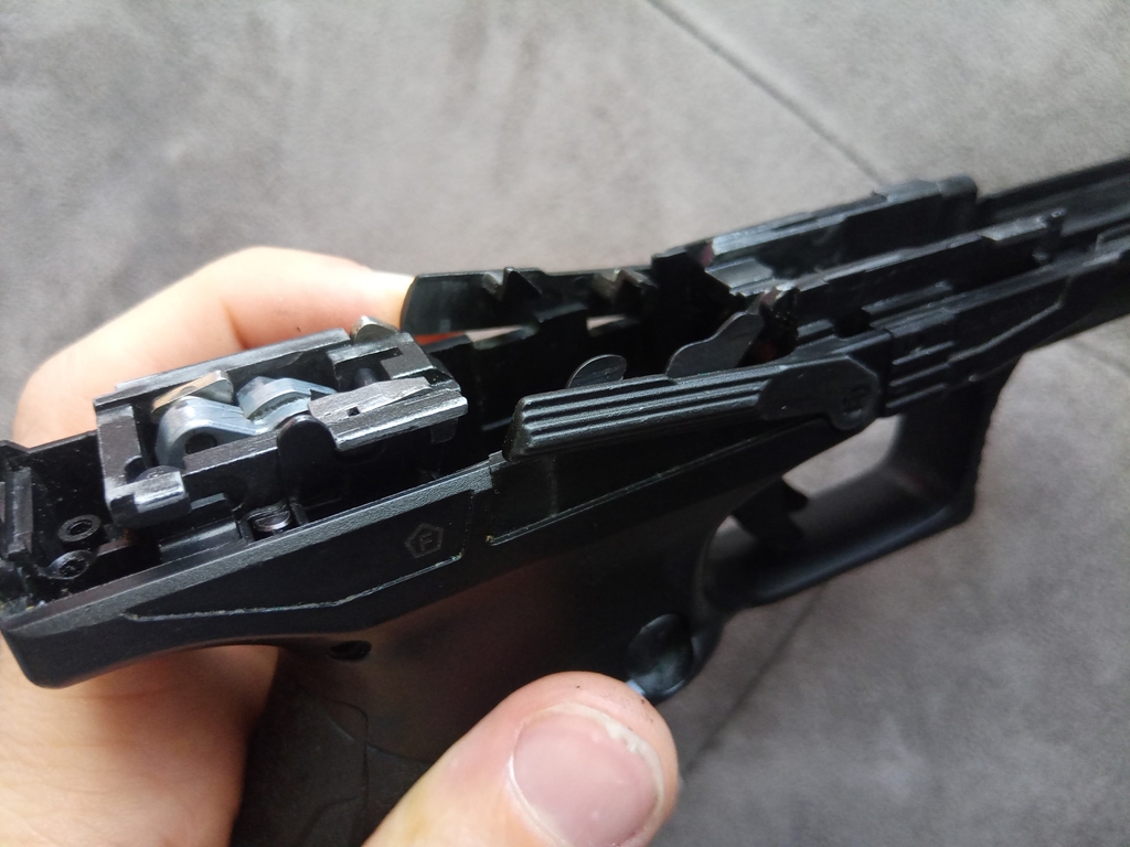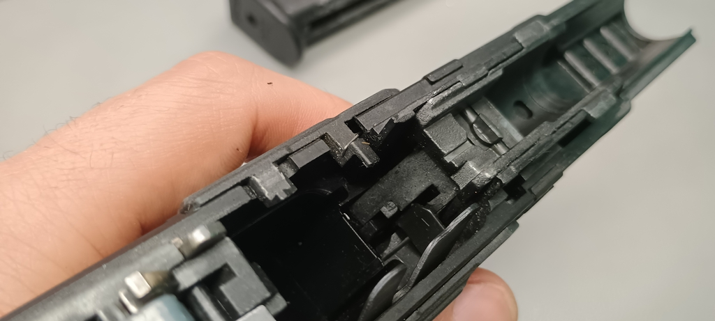 Mellé további gondom, hogy a Gen2 verzió számos tekintetben javult, de a törés és repedés hibákat nem annyira javította. Jobb lett, az tagadhatatlan, de távol van a hosszútávon használattól ez a verzió is. Sajnos a VFC-re pedig jellemző, hogy egy adott tervet szeretnek újrafelhasználni más pisztoly tervezésénél, ez lett a PDP replika veszte is - amely ráadásul a szán gyengeségét egy újabb és rosszabb szinte emelte. Számomra az egyik első eset volt, hogy előrendelést mondtam le - a PDP-ről szóló első fotók és beszámolók után láttam mennyi a gond a típussal.