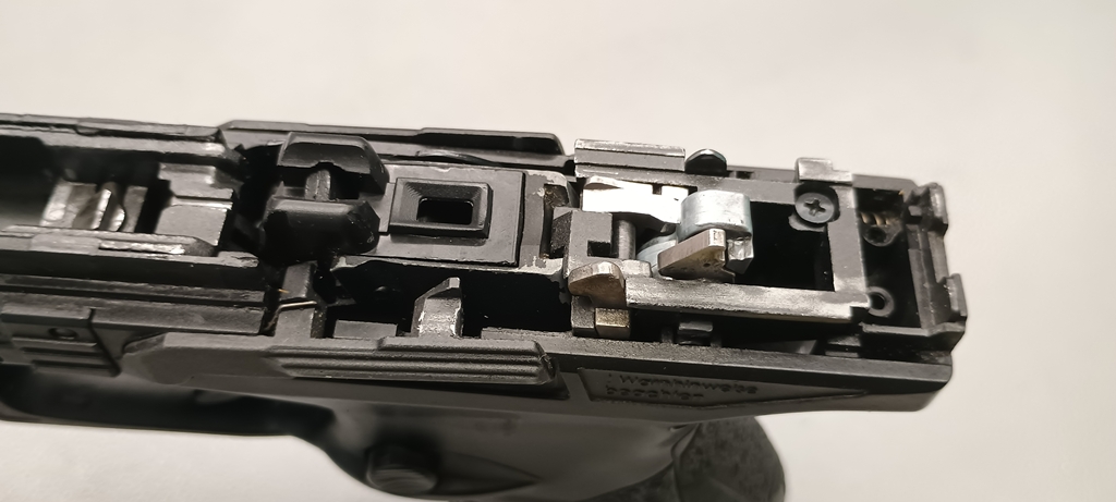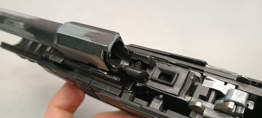 Külön kiemelem azt a részletet, ami az elsütőrudazaton figyelhető meg. Hatalmas méretű, acélból készült lemezalkatrész ez, nagyon hasonló a formája az éles verzióhoz hasonlítva.