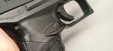A pisztoly kezelőszervei abszolút illeszkednek a mai elvárásoknak, habár nem 100% kétkezes a pisztoly. Kapunk egy jól védett, de a tok síkjából magasan kiálló, jól kezelhető tárkioldót. Sajnos csak egy oldalon lehet használni, de legalább átforgatható az ellenkező irányba is. Benyomásra a tárat azonnal ejti a pisztoly, benyomás ereje is átlagos - nem puha, de nem is kemény.